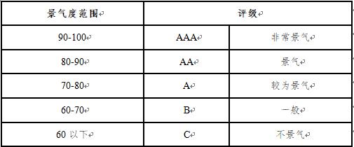 注:个位数0-3计“-”;个位数7-9计“+”;举例:景气值72评级为A-;76评级A;78评级A+。