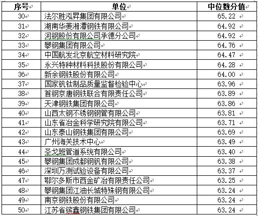 评价结果分为综合排名前50、牵头起草国家标准前10名、牵头起草行业标准前10名和牵头起草国际标准前10名,分别见下表。