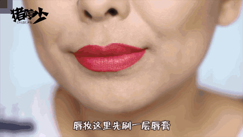 用散粉刷或粉扑沾取散粉均匀地扫/扑在嘴唇上