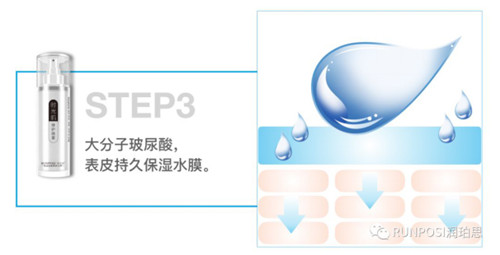 润珀思时光肌修护喷雾,主要成分是梯度玻尿酸。玻尿酸是世界公认的最强补水成分,润珀思的强,还在于梯度配比技术,把玻尿酸按不同分子量大小配比成肌肤所需的成分。