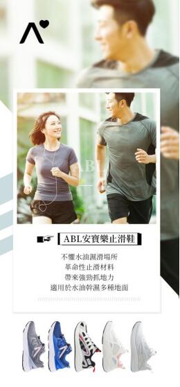 ABL止滑鞋采用的即刻制动止滑科技4.0.这项新技术是在集结了韩国橡胶新材料、日本新型纳米技术、中国高分子化学领域专家的ABL即刻制动实验室中诞生并发展的。ABL止滑鞋目前的4.0止滑版本,更是经过1000多种高新材料的实验和10万多次测试,以及一代、二代,三代产品迭代与升级。