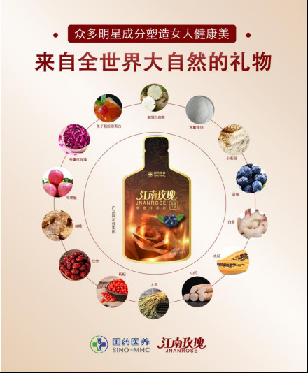 蓝莓、苹果、红枣、枸杞、葛根、黄精、人参、胶原蛋白等数十种天然物质能够对“宫、胸、脸”三位一体的滋养解决女性困扰,江南玫瑰细胞营养素汇集全球生产根源地的蔬果力量,以1:100的比例萃取,是一款适合追求健康女性每天摄入的好产品。
