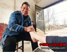 中国 城市文化 传播网讯 (高军 徐利勤) 2月28日下午,在山东省郯城县马头镇高册社区陈高册村骆师傅家里,他正为仇高册一位村民的脚部进行正骨推拿。只见骆师傅一手托起脚后跟,一手握住脚面损伤的部位,先是摸一摸,捏一捏,拽一拽,揉一揉,然后用力一扳...