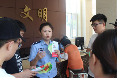 在烟台市公安局莱山分局大厅,实践队队员受到了热情招待,分局派遣谭警官与实践队进行了调研寻访工作的对接。