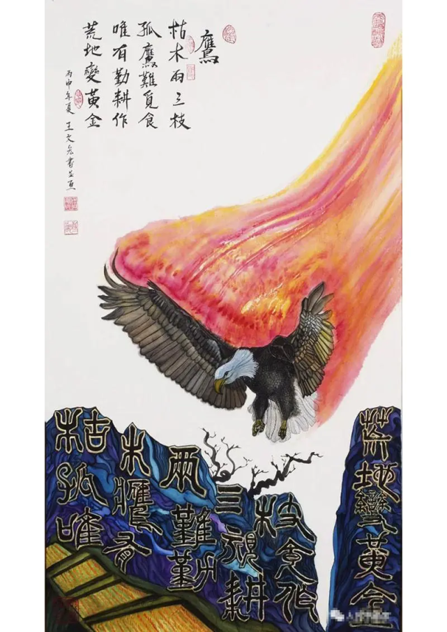 创作概念:以发扬中华文化为依归,期以国人共勉之,鉴于中华书画文化之精随乃在于诗、书、画的整体表现;然而纵古至今诗、书、画的展现方式, 若不以画为主以诗书为辅,亦就是以诗书为主以画为辅的形式呈现于作品上,而未见同时以诗、书、画三者融合为一的创作表现因而尝试以此思维用于个人的创作理念上。