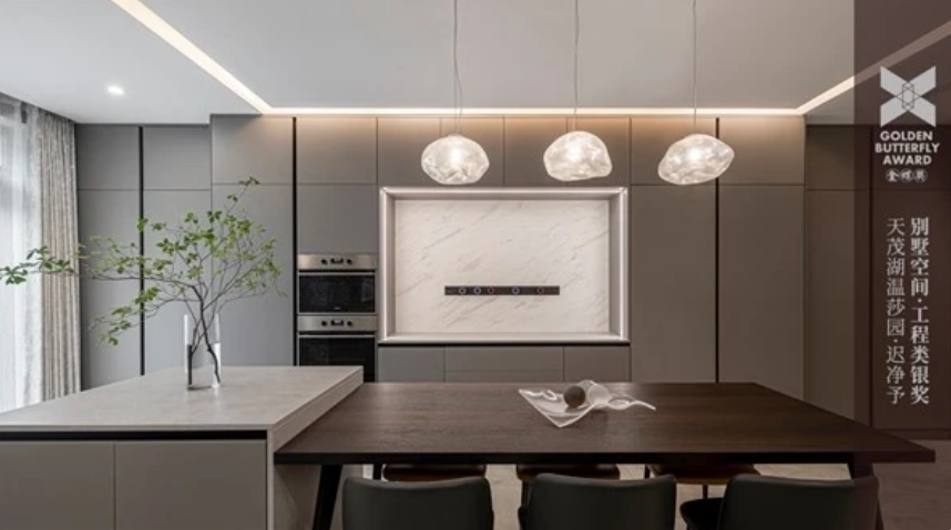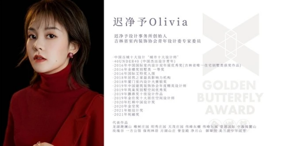 近年来,迟净予女士作为吉林省室内装饰协会青年设计委专家委员,也致力于用专业性与经验引导年轻人,积极推动设计教育及行业发展。2022年1月13日由吉林省室内装饰协会、辽宁省装饰协会、黑龙江省室内装饰协会、联合主办的北方最具影响力和公信力的“日立杯第六届金蝶奖”颁奖盛典在长春举办,设计师迟净予参赛作品[天茂湖温莎园]在2891套参赛作品中经过严格评审,荣获金蝶奖[别墅空间]工程类银奖荣誉。