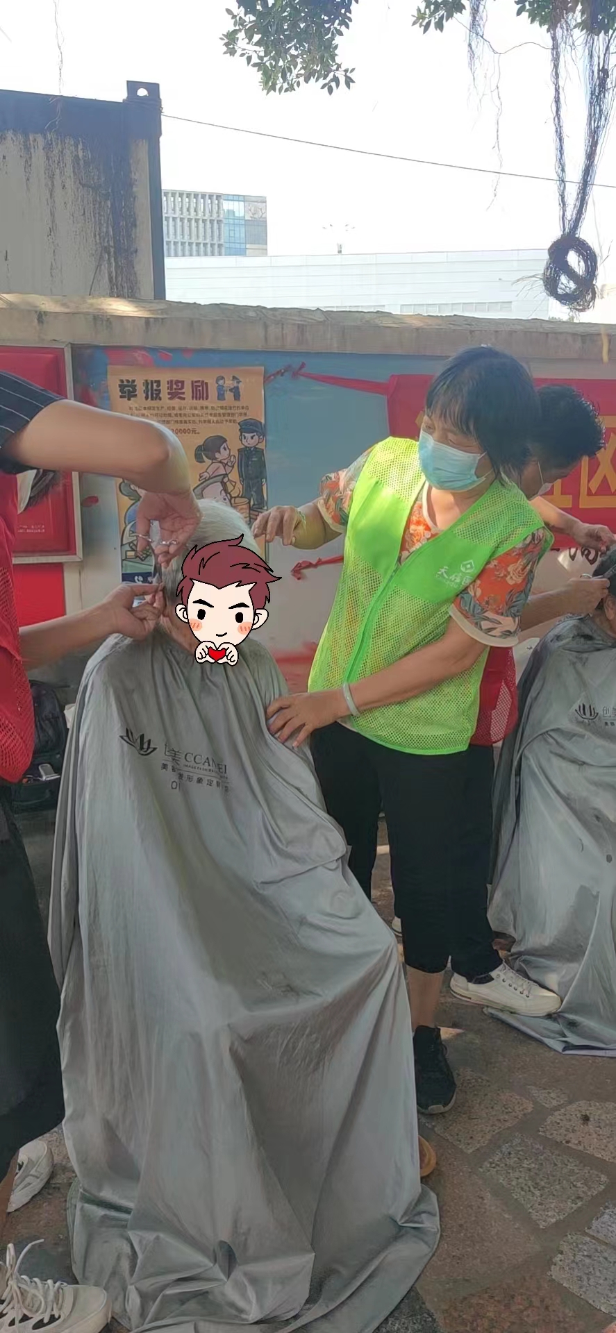 本网讯 近日,为给广大社区居民打造一个良好和谐友爱的生活氛围,给社区老人提供更贴心便利的志愿服务,进一步弘扬雷锋精神,充分展现社区志愿者乐于奉献、不求回报的精神风貌。沙步社区协同黄埔区南岗综合养老服务中心(颐康中心)的志愿者与某发型机构,以“爱在金秋,情暖夕阳”为主题,走进沙步社区,为老年人提供义剪服务。