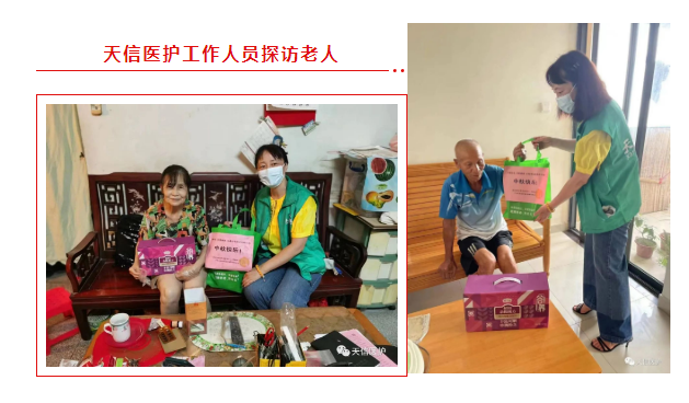 本次中秋为老活动旨在传承和弘扬中华民族传统美德,传递社会大众对社区长者家庭的深切关怀,让老人尤其是独居空巢老人感受到社会大家庭的关爱和温暖。温馨的探访,短暂的陪伴,贴心的服务,颐康中心工作人员每到一处都会与老人们亲切地交谈,聊聊家常,关怀老人们的生活点滴,用真情和行动温暖着社区长者的心,让老人们真真切切地感受到来自天信医护以及南岗街颐康中心大家庭的关爱与温暖。(来源/天信医护)