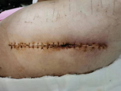 图/张阿姨手术刀口触目惊心