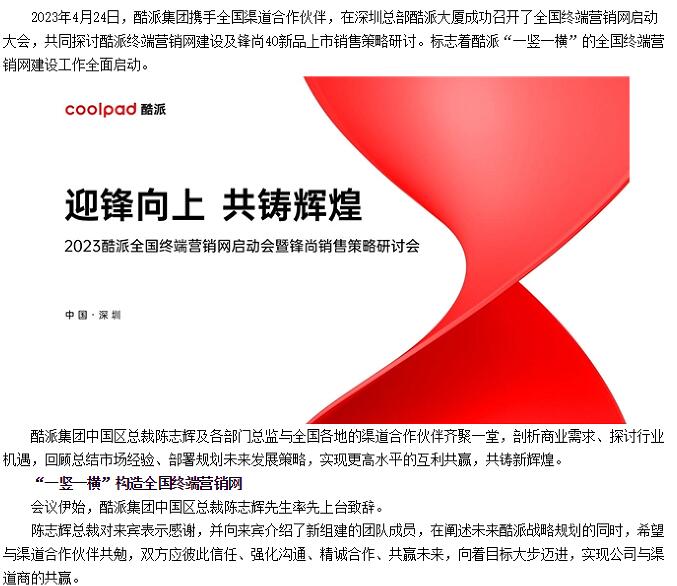迎锋向上,共铸辉煌 酷派全国终端营销网建