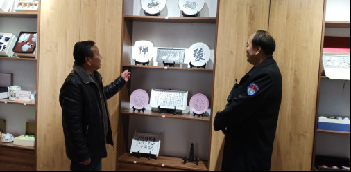 12月13日,世界华人书画家协会主席、联合国华人文化产业联合会主席韩昊轩一行在潘安湖婚礼小镇党委书记闫景怀陪同参观马庄文化礼堂。潘安湖书画协会会长李孝民向韩昊轩主席一行详细介绍马庄文化发展的历程,大家领略马庄精神文明建设和红色乡土文化。