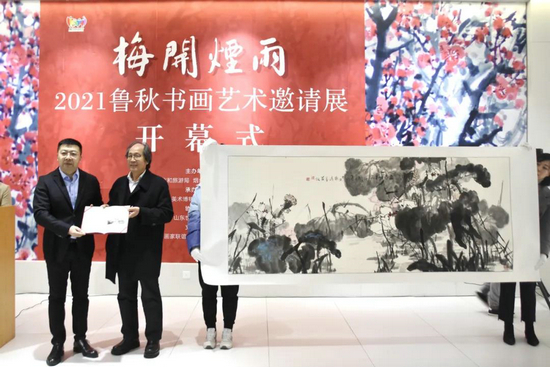 2021年3月20日,由烟台市文化和旅游局、烟台市文学艺术界联合会主办,烟台美术博物馆(烟台画院)承办,山东世基发展集团协办,中国书画家联谊会、北京世界华人文化院支持的“梅开烟雨——2021鲁秋书画艺术邀请展”在烟台美术博物馆开幕。来自北京、长春、深圳、德州以及我市书画界、企业界领导和嘉宾及驻烟艺术院校师生两百余人参加开幕仪式。