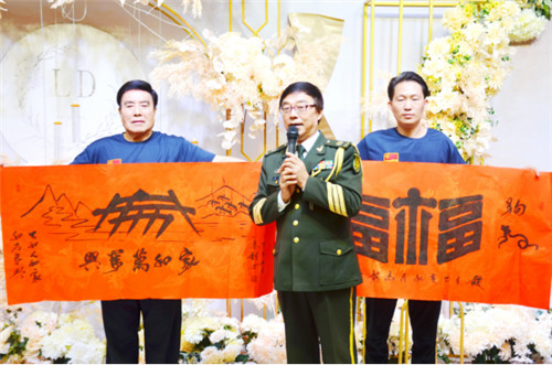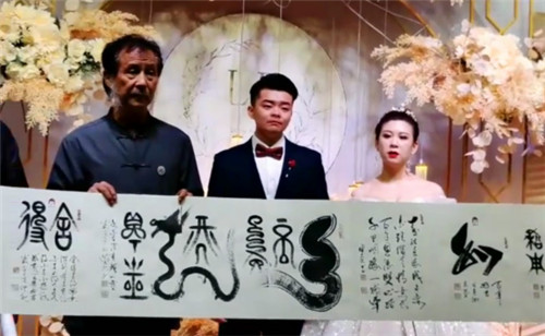 到贺的嘉宾中有众多世界华人书画艺术家,双方至亲好友欢聚一堂。世界华人书画家协会副主席、世界华人文化艺术团团长、武警文工团导演、著名男高音歌唱家高歌为典礼演唱了歌曲,并为新人题写了墨宝,世界华人文化艺术团副团长、著名军旅歌手吴龙宜演唱精彩歌曲把典礼推向了高潮。世界华人书画家协会副主席孝衍彬、陈志忠副主席向新人赠送了墨宝。世界华人书画家协会副主席周墨、江苏分会丁文轩副主席、王传和副主席挥毫泼墨为参加婚礼的亲朋好友书写了墨宝。