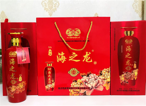 海之龙酒以优质高粱为原料,再用小麦、大麦,豌豆培养的高温大曲为糖发酵剂,由酿酒大师撷取“美人泉”之甘露,以著名历史文化遗存之黄泥老窖,特选优质原辅料,采用代代相传神妙独特的工艺,结合高科技,经以陶坛窖藏7年老熟而成,从粮食到美酒的过程需要经历八十一道复杂的酿造工艺。具有芳香、绵甜、甘爽、香味协调等特点。色清透明,香气浓郁,风味协调,尾净余长,“色清如水晶,香纯如幽兰,入口甘美醇和,回味经久不息。”