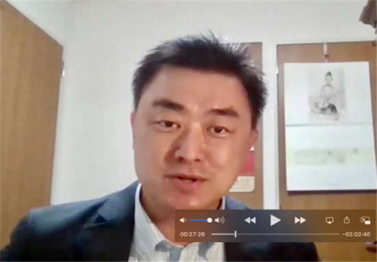 在随后的线上演出环节中,谢菲、黄娟为大家带来电视剧《脱身》片段的配音秀,她们用自己的声音,将上海女人娇中带着几分柔,柔中又带着几分媚的形象刻画地入木三分;晶莹、田启祥等八名学员通过群诵《因为有你》,向疫情中奋战在一线的医护人员致以最崇高的敬意;李岩松、刘鸿为《音乐之声》片段的配音,瞬间就将我们带进了经典电影的情境之中;最后由在日华人舞蹈家、书法家张屹女士编创的墨舞《渴望》,俊美的舞姿与书墨风采相得益彰,人、舞、书法与天地合二为一,共同谱写人类永恒不变的主题—爱......