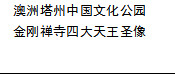 2016年5月15日,金刚禅寺镇寺石狮暨四大天王开光圣典在建造中的澳洲塔州中国文化公园隆重举行。中国驻墨尔本总领事馆周育江领事致辞:“王大师把中国佛教文化带到了
