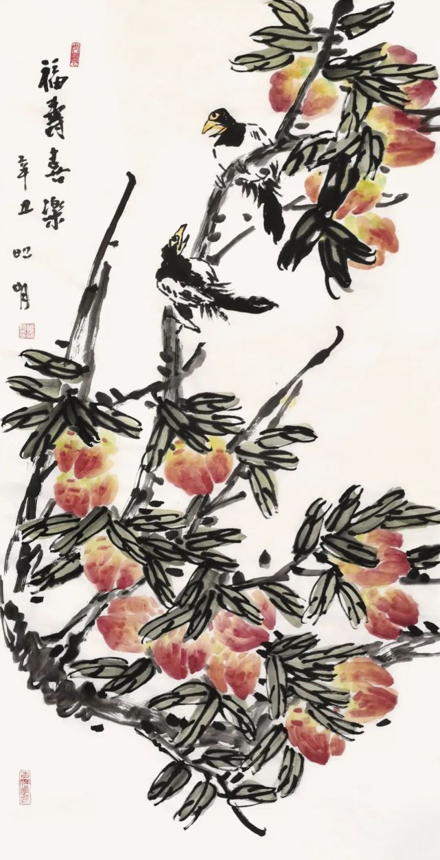 ▲《福寿喜乐》 68x138cm 曾昭明 作