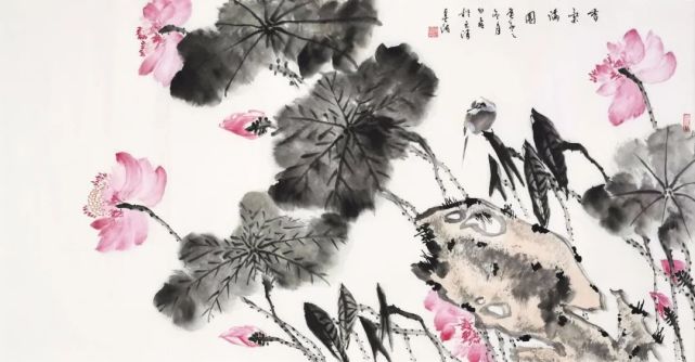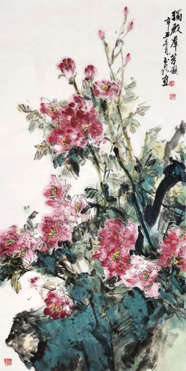 ▲《独占群芳图》 68x138cm 李玉泉 作