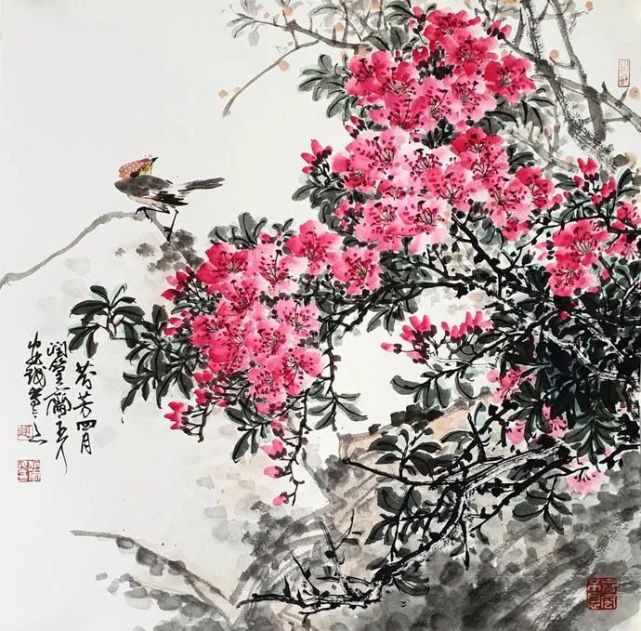 ▲《山高杜鹃》 68x138cm 沈光伟 作
