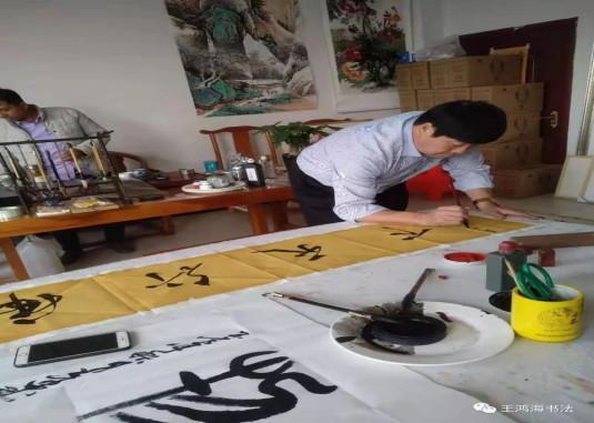 著名书法家王鸿海老师在笔会现场泼墨挥笔
