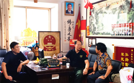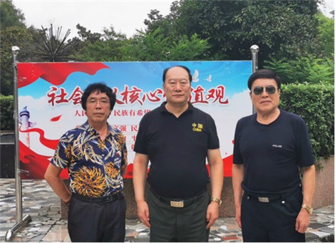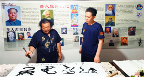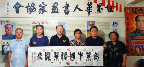 世界华人书画家协会副主席、香港华人杂志社华东分社社长陈庆安先生、香港华人杂志社副总编、世界华人书画家协会秘书长徐嫣女士、世界华人书画家协会副秘书长朱从磊先生、创业中国江苏分社社长杨思峰先生、创业中国江苏分社编辑部主任、著名甲骨文书法家王建钢先生、创业中国江苏分社开发部主任刘敏女士参加陪同。