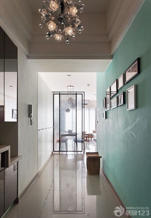 音乐家的家装,一定有他的独特气质。沿着Tiffany蓝的壁面入内,薄荷绿的运用大胆不失稳重。悬垂而落的吊灯在茶镜投射中逸散晶灿光芒,大量的收纳功能隐于细浅的沟缝线条内,端景视野落于夹纱玻璃与铁件构筑的透光隔屏处,呈现视野无限延伸的玄关意象。
