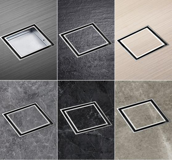 高隐系列不同于常规地漏,表面没有各种孔洞,而是一个盒子的形状,搭配瓷砖相同的颜色,可以完美融入,乍一看你甚至发现不了地漏的存在,细看之下才会发觉用于排水的边缘。