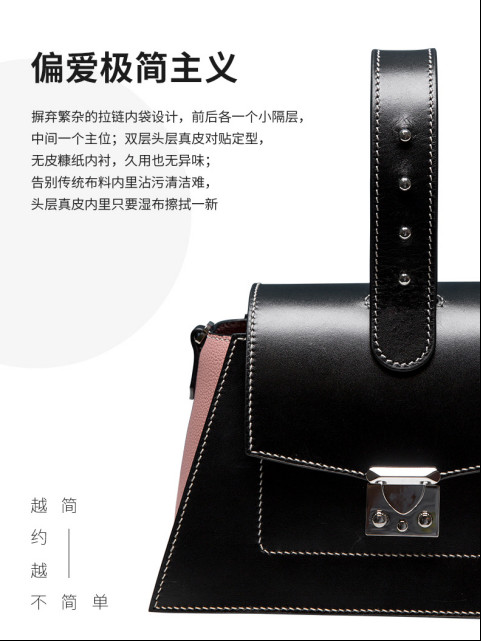 好包,一定要立体。无论什么时候,我们都不希望包包干瘪塌陷有褶皱,为了避免这一点,很多产品会在包里增加皮糠纸等填充物,但这会增加其重量,同时不方便清洁。为了打造包包的立体感,不惜加大成本,里外双面均采用了头层牛皮;使得包包立体不塌陷,圆滑不褶皱。