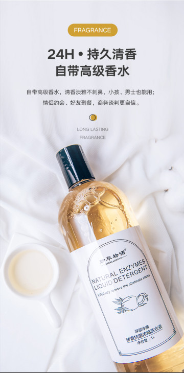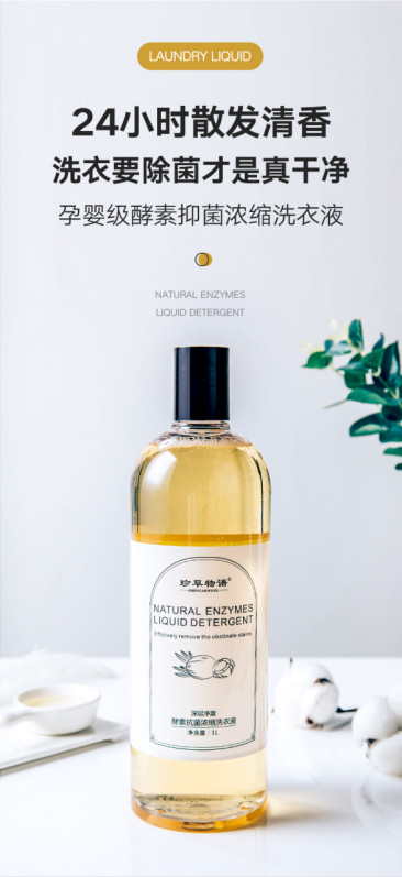 植物酵素洗衣液,选用椰子油皂基高纯度提取,天然温和无残留,不含有害化学物质,减少皮肤干燥,滋润呵护肌肤。