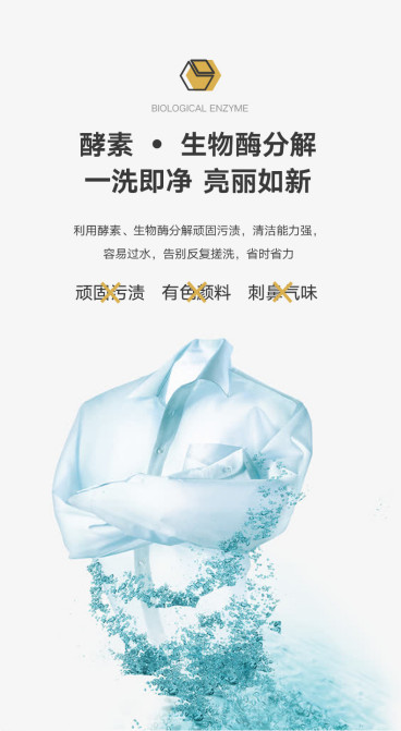 植物酵素洗衣液,利用酵素生物酶分解各种污渍,有着非常强大的清洁能力,顽固污渍、有色颜料、刺鼻气味等轻松搞定。更重要的是,可以告别衣服反复搓洗,易漂易清易过水,再也不担心衣物残留,省时省力更安心。