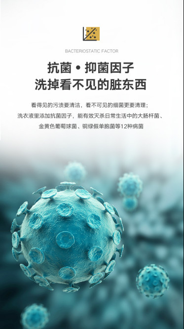 洗衣液里添加安全的抗菌因子,能有效灭杀日常生活中的大肠杆菌、金黄色葡萄球菌、铜绿假单胞菌等12种病菌,是清洗内衣裤、贴身衣服的首选,让衣服真正变干净。