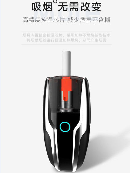 烟具内置精密控温芯片,采用加热不燃烧新型技术,将烟草烟丝进行低温加热烘烤,从而产生烟雾。兼容市面各种烟弹,烟弹直插抽吸方便,还原真烟自然口感,烟味自然纯正,给人抽吸传统香烟的体验。