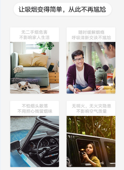 除此之外,经常抽传统香烟的人,口腔卫生会比一般人要糟糕,与人交谈时散发难闻的气味特别尴尬;另外在车内吸烟时,烟头散落造成车内残留烟味,甚至还可能导致火灾隐患,影响空气质量。这一系列危害,皆是因为传统香烟而导致的,那该怎么办呢?