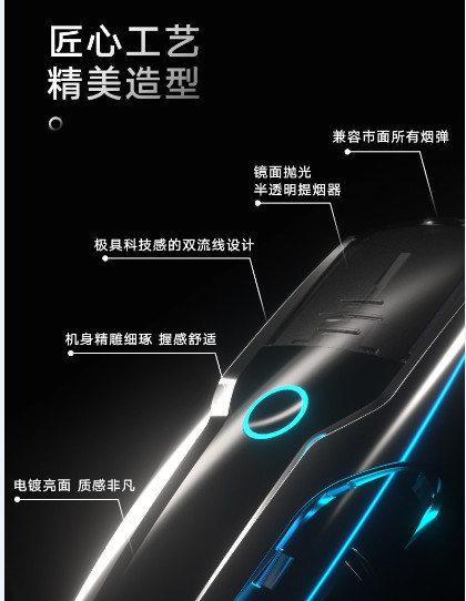 如果你是一个颜值控,那么这款电子烟具绝对让你倍有面儿。极具科技感的双流线设计,镜面抛光、电镀亮面,显得整个烟具质感非凡;机身精雕细琢,握感舒适,手感非常好;小小的身材让你方便携带,你就是整条街最靓的仔!