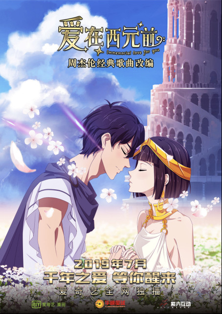 由周杰伦同名金曲改编的都市偶像爱情奇幻动漫剧《爱在西元前》是国内首部以歌曲改编的动漫IP,近日发布了定档海报,并将于2019年7月正式上线爱奇艺全网独播,每周六播出。