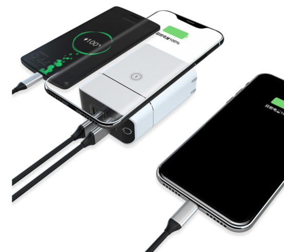 除了不用带一堆乱七八糟的线外,三合一智能充电器还有一个非常棒的地方。它可以同时给移动电源和手机充电,在外旅行或者商务合作的时候时间是多么宝贵啊,只需要睡前把设备插墙上给手机充电,早上醒来,手机和充电宝统统充满电,一举两得不能更棒!节省了不少时间呢!