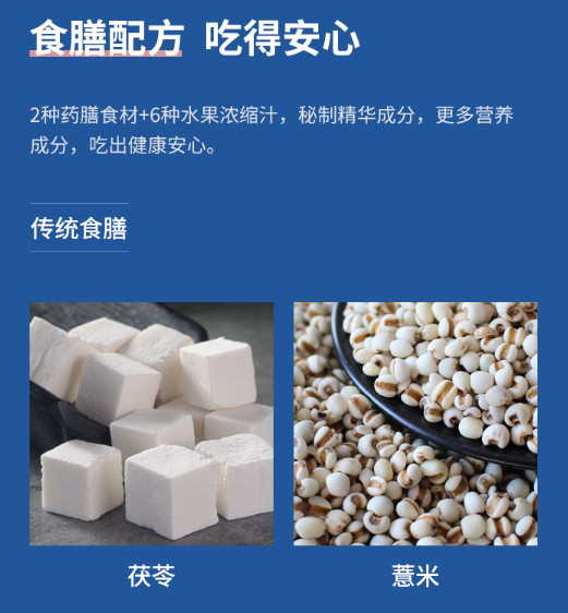 除了从深海捕捞的金枪鱼原料中提取的精炼出的小分子肽粉,还有2种药膳食材和6种水果浓缩汁,营养丰富口感好。