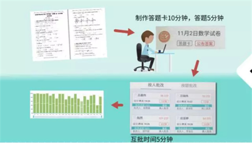 其次,利用作业互批,师生共同减负提效,将原本3天才能完成的考试、批改、讲评过程缩短到半天。同时巧用微课,实现课堂翻转,力促学生个性化学习。