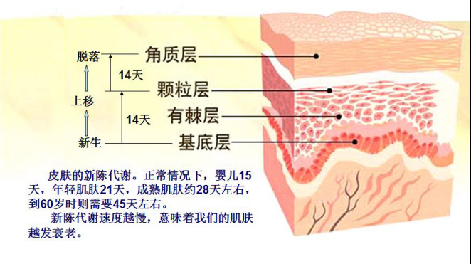 细胞从基底层分裂,向上推移,死在最外层;细胞不断分裂、不断推移、不断死亡的过程就是新陈代谢。死细胞不会自己脱落,堆积在最外层,成了角质层,也就是死皮层。