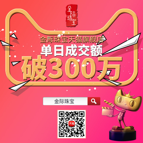 在此局势下,入驻天猫仅5天的金际珠宝,在8月5日单日黄金成交额即突破300万,首秀告捷!金际珠宝天猫旗舰店由专业团队倾力打造,秉持着卓越的品质和个性化的设计,一如既往地为消费者提供至美至臻的金银产品。