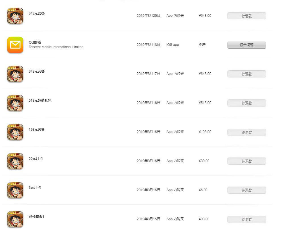 按道理 我都是 通过一个渠道付的APP内购 为啥 只有 小额度的啊 那几个大额度的 咋没有退 |