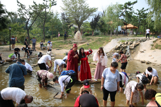 8月28日上午9时,两位当红网红主播现身招远黄金珠宝首饰城,带网友参观招金银楼、鲁鑫、裕源公等品牌店,试戴各种精美金银首饰。活动一上线,淘宝直播和花椒直播观看人数迅速过万。在黄金博物馆、淘金小镇,一场场人气十足的网络直播,串联起线下黄金节的热闹场景,向全国全世界的粉丝同步展示如火如荼的黄金节。