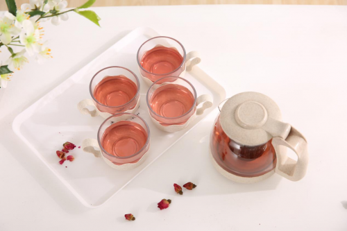 搭配的四个杯子采用加厚手柄,防烫隔热
