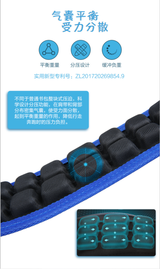 专为孩子设计符合人体工程的减负护脊气囊式书包,
