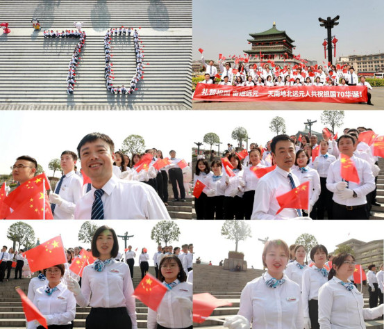 “同心共筑中国梦、共创美好新时代!礼赞祖国,奋进远元。天南地北远元人共祝祖国 70 华诞!”城墙下,陕西远元人庆贺祖国70华诞。