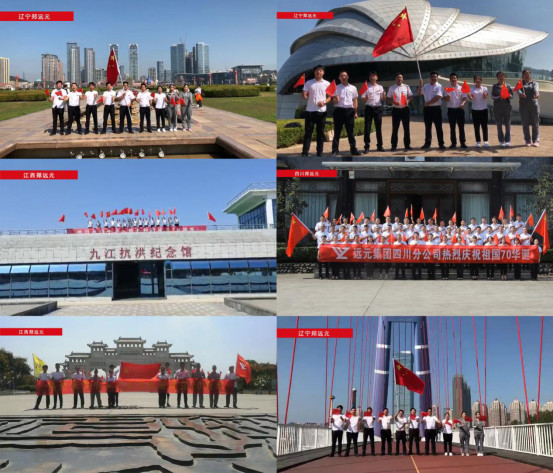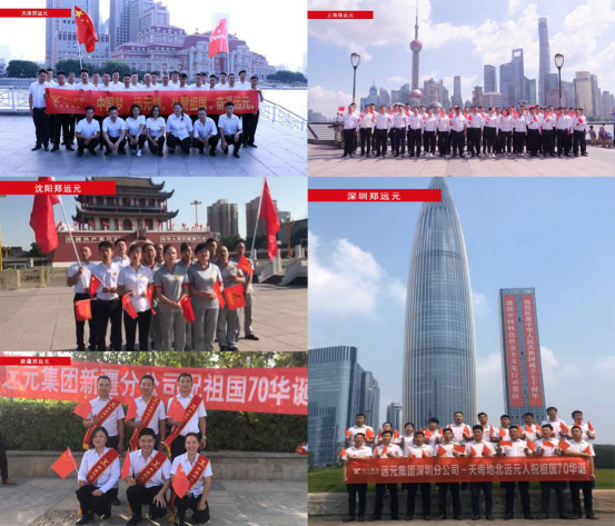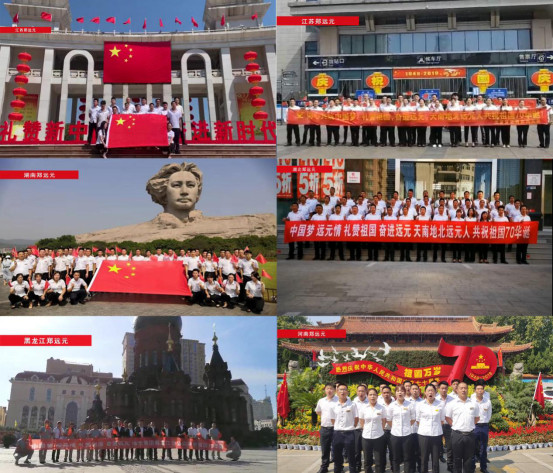 这是远元集团举行的“礼赞祖国 奋进远元——天南地北远元人共祝祖国 70 华诞”活动,不同城市的地标建筑物下,远元人用自己的方式,喊出心中对祖国母亲的祝福,向中华人民共和国成立70周年献礼,共同为祖国庆生。