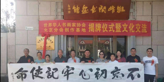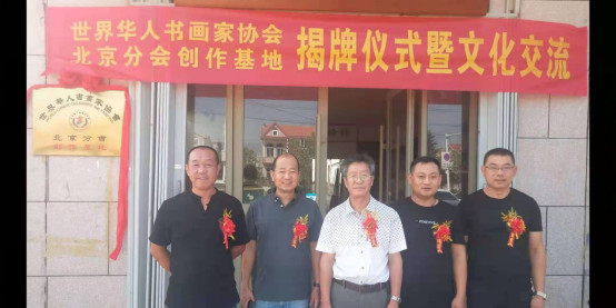 10月3日,世界华人书画家协会北京分会创作基地揭牌仪式在青岛鳌山湾鹤峰阁书画馆举行,由北京分会副主席刘新德先生和创作基地主任朱峰良先生揭牌,并邀请当地领导和文化名人参加了本次活动。