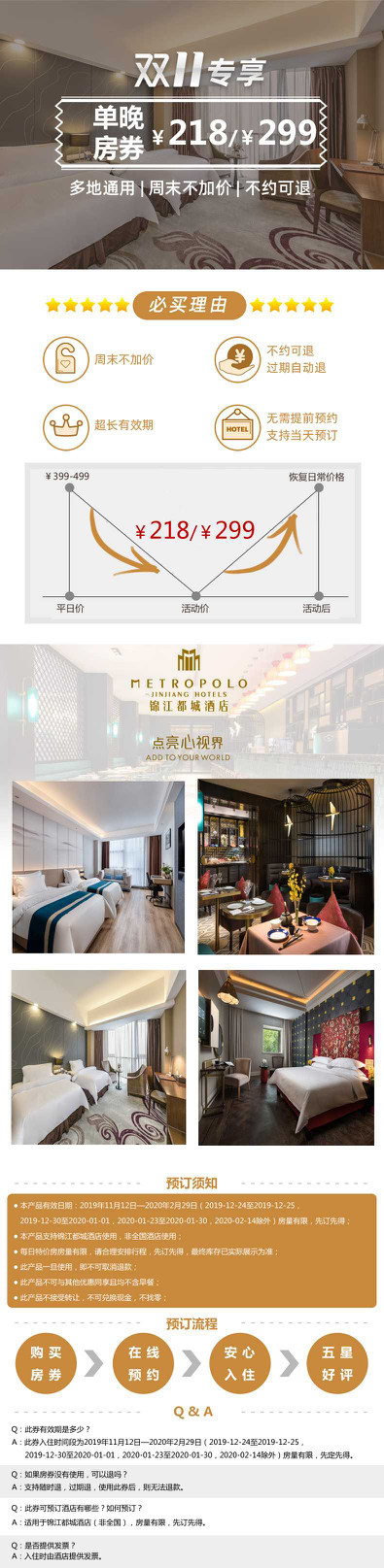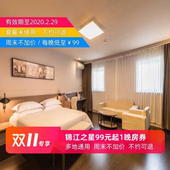 活动期间,锦江之星酒店优惠价低至99元,白玉兰酒店活动价低至159元,锦江都城酒店活动价低至218元。入住有效期更是从2019年11月11日到了2020年2月29日。便宜到不敢置信,叫人怎么能忍住不囤券呢?