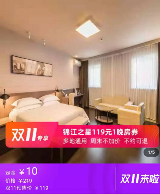 为了给广大的客户群体更好的消费体验,锦江都城集团还在自己的淘宝(飞猪)官方店锦江之星官方店内开启了定金模式!