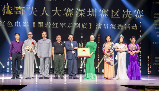 大型红色题材电影【跟着红军走到底】拍摄委员会和传奇夫人大赛达成了战略合作,未来将持续宏扬红军长征精神、传承传播红军精神,传奇夫人大赛创始人明一梦是中国民族英雄冼夫人的全球形象大使,多年来一直引领夫人们进行传统文化学习,让夫人们更加爱国爱家。电影【跟着红军走到底】总策划舒明,艺术顾问赵望明,深圳摄制组负责人唐怀勇,秘书长吴小丽等在台上亲切合影。